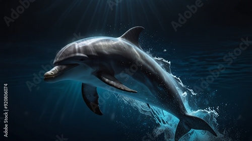 © Antonio, Fototapeta premium Dolphin jumping out of water. Mixed media.
