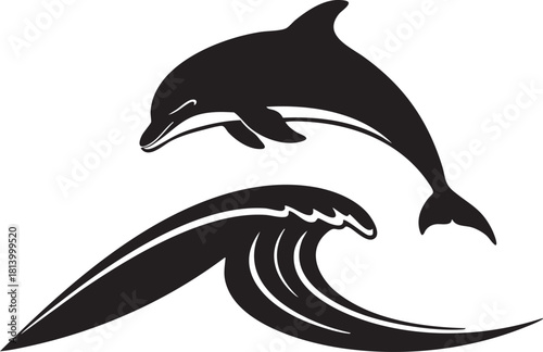 © Sudip, Fototapeta premium Dolphin jumping over ocean wave black silhouette vector logo icon illustration