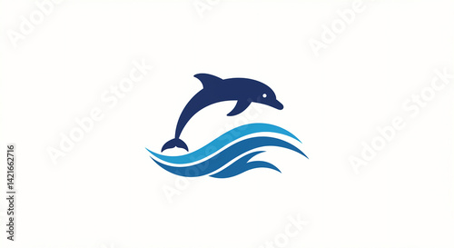 © Vanier Johanne, Fototapeta premium Dolphin Jumping Over Waves Simple Graphic Illustration
