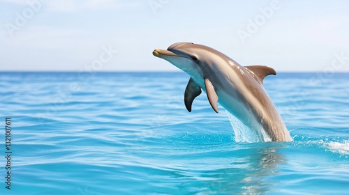 Naklejka premium Dolphin leaping from ocean, clear sky