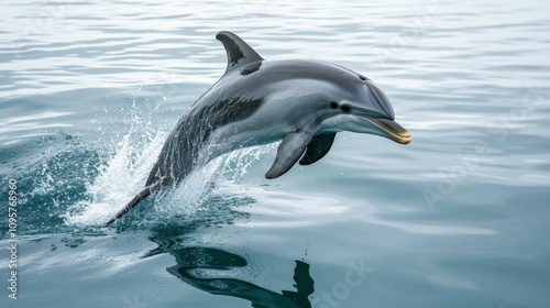 Fototapeta premium Dolphin Leaping from Water Creating Ripples