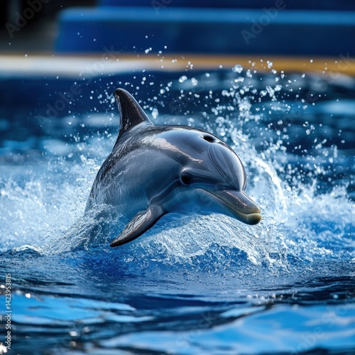 © nodabandel132, Naklejka premium Dolphin leaping gracefully through water