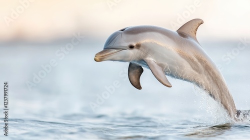 Fototapeta premium Dolphin leaping ocean sunrise wildlife nature