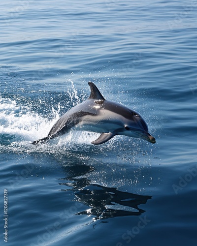 Fototapeta premium Dolphin Leaping Ocean Waves Aquatic Mammal Wildlife Nature Scene