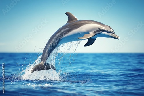 Fototapeta premium Dolphin leaping out of the ocean waves, capturing its graceful movement and power
