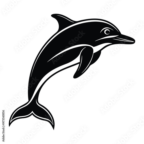 Fototapeta premium Dolphin leaping silhouette, dynamic vector