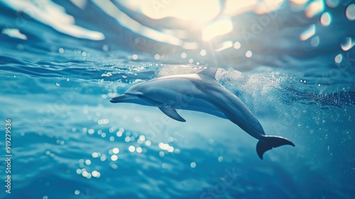 Obraz premium Dolphin Leaping Through Sunlit Water