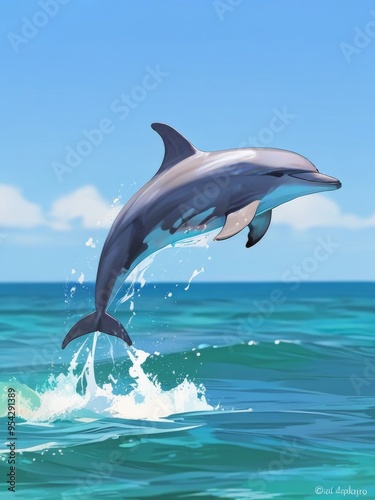 © YudhiaAsta, Obraz premium Dolphin Leaping Through the Turquoise Waves
