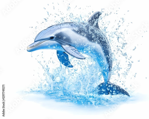 Obraz premium Dolphin leaping, water splash, white background (1)
