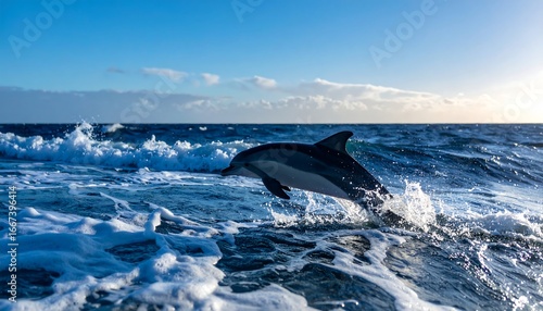 © goodskin, Fototapeta premium Dolphin leaps from ocean.