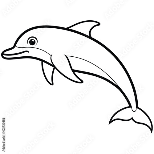 Obraz premium Dolphin Line Art Vector Illustration, Outline Aquatic Animal Graphic