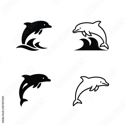 Fototapeta premium Dolphin Logos in Various Styles Black and White Design Elements for...