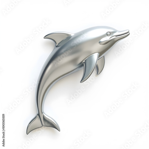 © Tark, Fototapeta premium Dolphin metallic 3D image of silver dolphin on white background. Generative AI