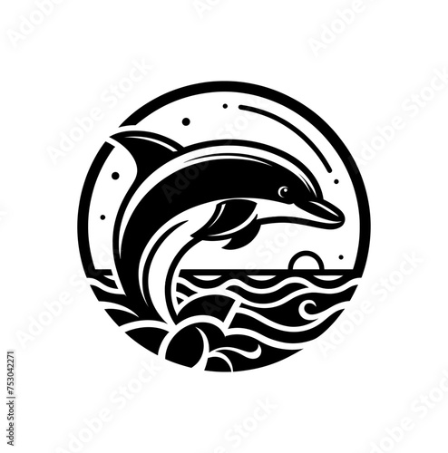 © Almaz, Obraz premium Dolphin monochrome isolated vector illustration