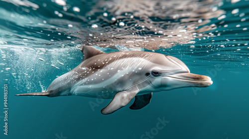 Fototapeta premium Dolphin portrait while looking at you with open mouth. Dolphins Jumping From...