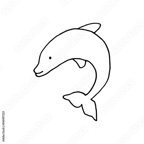 Obraz premium Dolphin, sea animal, mammals. Doodle. Vector illustration. Hand drawn. Outline.