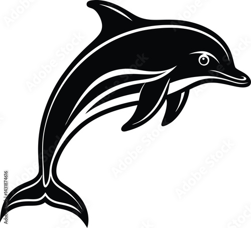 Naklejka premium Dolphin Silhouette Black Vector | Ocean Animal