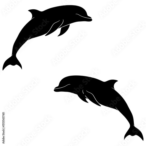 Fototapeta premium Dolphin silhouette, Double Dolphin set box icon, Dolphin illustration, silhouette, set icon, silhouette, Dolphin icon