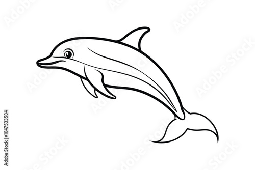 Fototapeta premium Dolphin Silhouette Line Art Vector – Minimalist Marine Icon on White...