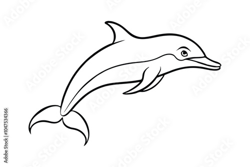 Fototapeta premium Dolphin Silhouette Line Art Vector – Minimalist Marine Icon on White...
