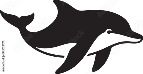Fototapeta premium Dolphin silhouette simple and clean design, Black and white marine animal vector