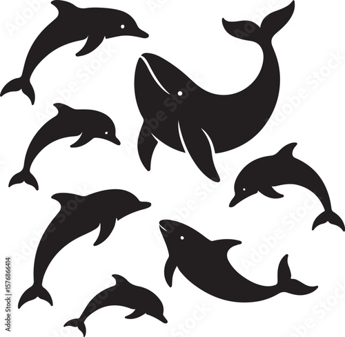 © Craft creations HUB, Fototapeta premium Dolphin Silhouette Vector Bundle