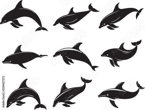 © Rokeyadesigner, Naklejka premium Dolphin Silhouette Vector Clipart Pack
