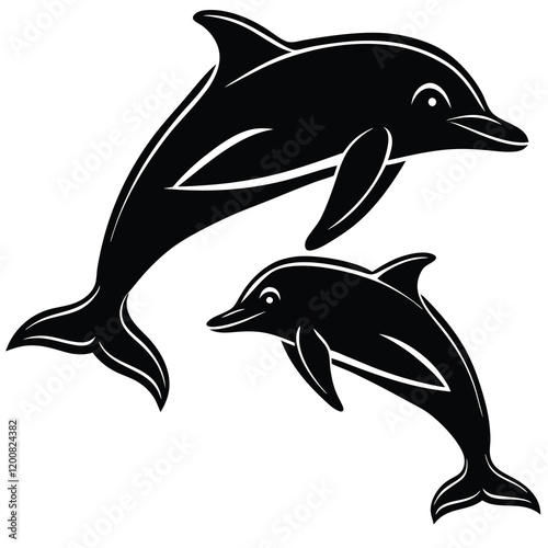 Fototapeta premium Dolphin Silhouette Vector: Elegant Marine Life Illustration for Creative...