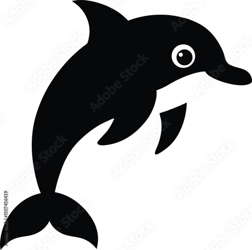 Naklejka premium Dolphin silhouette vector icon – black marine animal clipart on transparent background