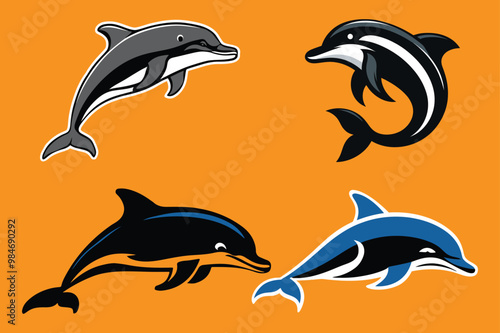 © SagorDesigner, Obraz premium Dolphin silhouette vector illustration