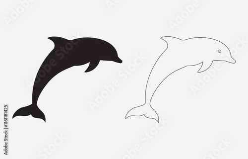 Fototapeta premium Dolphin Silhouette Vector Illustration Isolated on white background