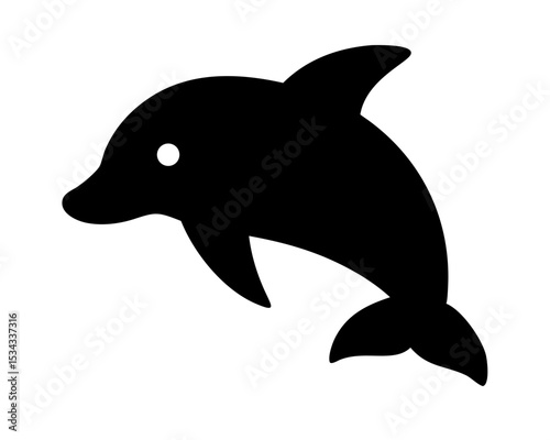 © 3D Stock House , Fototapeta premium Dolphin Silhouette Vector - Simple Black Jumping Dolphin Symbol of Ocean Freedom
