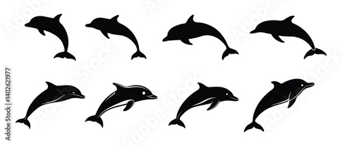 Obraz premium Dolphin silhouettes vector set.