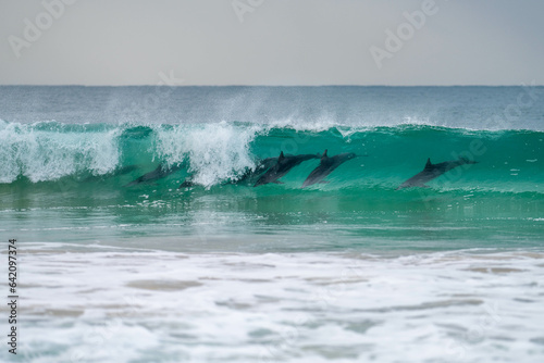 © Phoebe, Fototapeta premium dolphin surfing waves on a beach