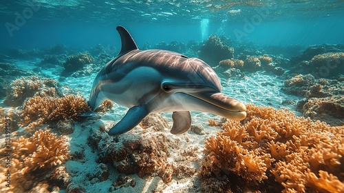 Fototapeta premium Dolphin swimming amidst vibrant coral reef