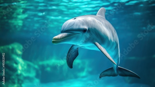 Obraz premium Dolphin swimming gracefully in clear blue water