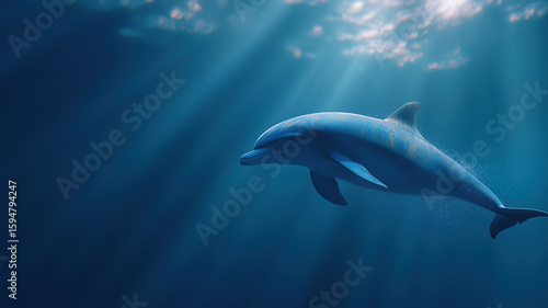 © BazziBa, Fototapeta premium Dolphin Swimming Gracefully in Ocean Waters Generative AI