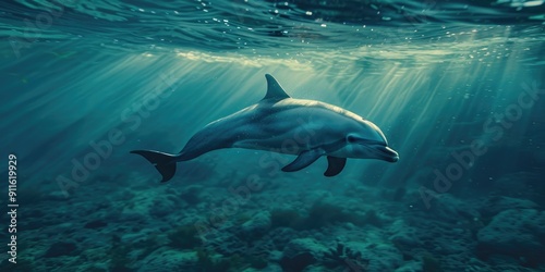 Fototapeta premium Dolphin swimming gracefully in the underwater world
