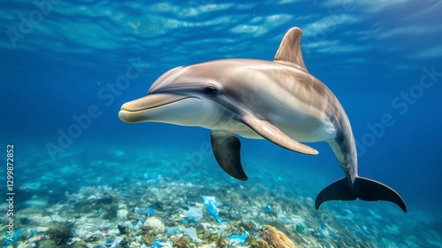 Naklejka premium Dolphin Swimming Gracefully Underwater in Clear Blue Water