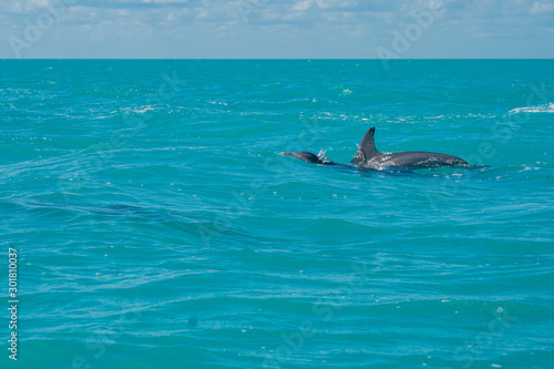 © Danny, Fototapeta premium Dolphin swimming in beautiful blue caribbean sea