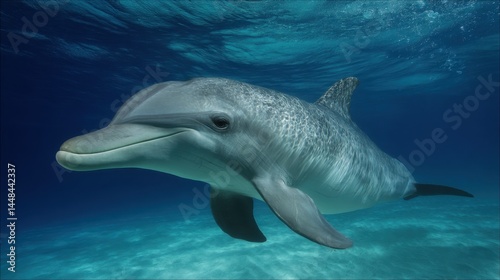 Fototapeta premium Dolphin Swimming in Clear Blue Ocean Water