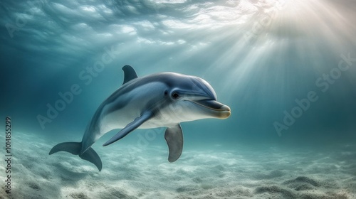 © akhmad, Obraz premium Dolphin Swimming in Sunlight
