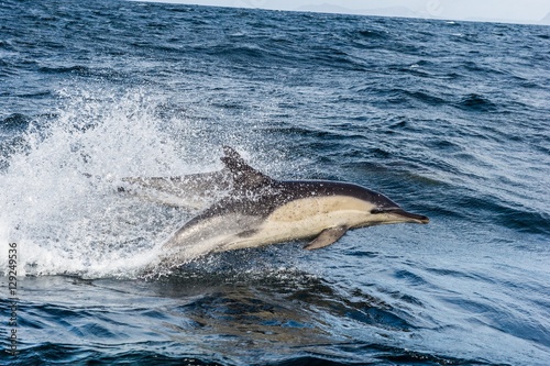 © Uryadnikov Sergey, Naklejka premium Dolphin, swimming in the ocean and hunting for fish. Dolphins swim and jumping from the water. The Long-beaked common dolphin (scientific name: Delphinus capensis)
