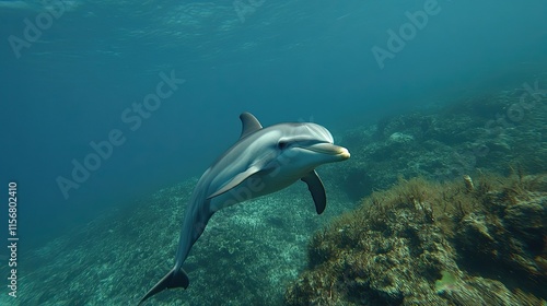 © Anwar, Obraz premium Dolphin swimming in the sea. Beautiful dolphin in the ocean