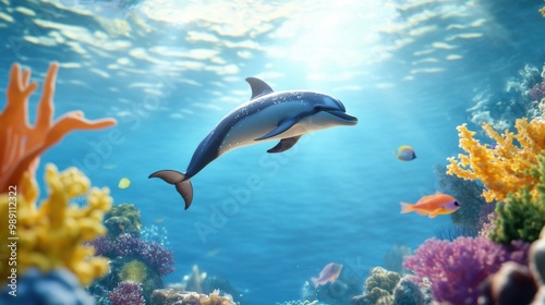 Fototapeta premium Dolphin Swimming in Vibrant Coral Reef Landscape