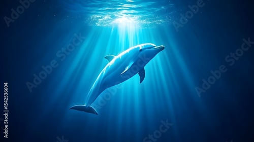 © Ahmad, Fototapeta premium Dolphin swimming ocean sun rays deep sea marine life