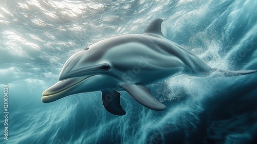 Obraz premium Dolphin swimming ocean wave sunlight underwater nature