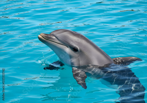 Naklejka premium Dolphin Swimming Underwater, Marine Mammal in Blue Ocean