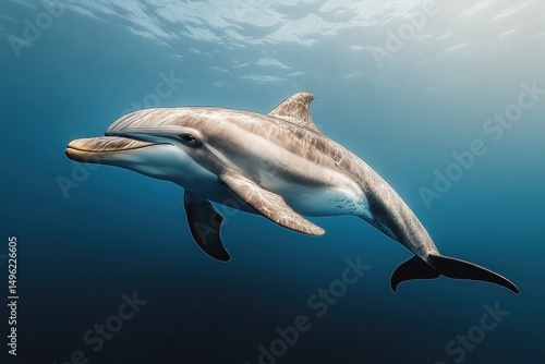 Fototapeta premium Dolphin swimming underwater, ocean background, marine wildlife, nature documentary
