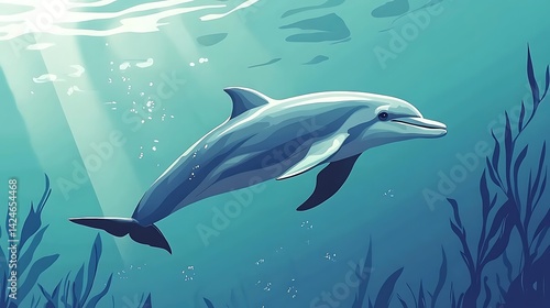 © Bagus Skak, Fototapeta premium Dolphin swimming underwater sunlight.